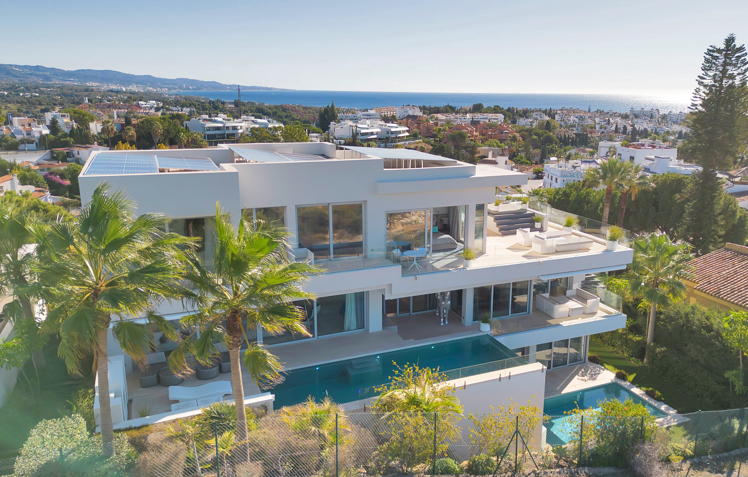 This exclusive newly built villa is truly in a class of its own. Location, architecture, style, and choice of materials come together to deliver a living experience of the highest caliber, offering ultimate quality and comfort. Situated near the Puerto Banús marina, with 360° views over the coastline, Gibraltar, and the iconic La Concha mountain, this villa radiates pure prestige, elegance, and exclusivity.